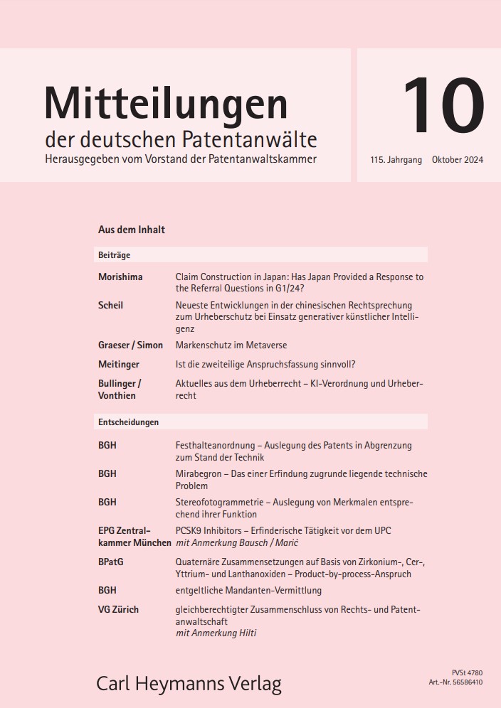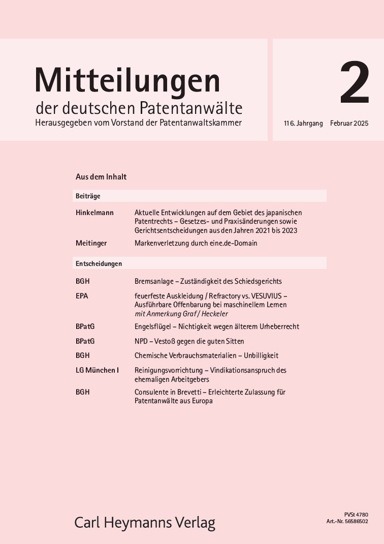 Dr. Meitinger beschreibt in der Januar-Ausgabe des Jahres 2025 die Entwicklung des Patentierungskriteriums der erfinderischen Tätigkeit.