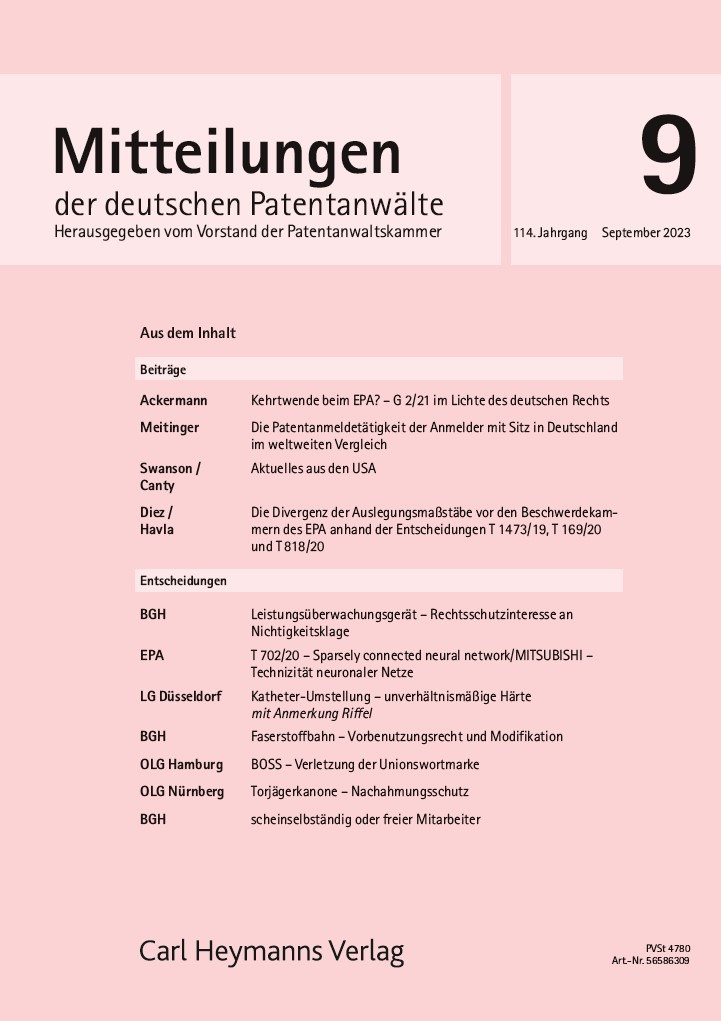 Dr. Meitinger erläutert in der Dezember-Ausgabe des Jahres 2023 insbesondere die unterschiedliche Verwendung der Begriffe "Neuerung" und "Erfindung" im Arbeitnehmererfindungsrecht und im Patentrecht.